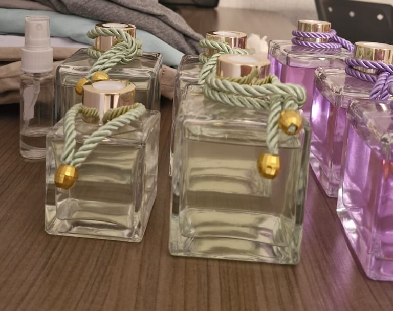 No site, você encontra aromatizadores de ambientes, na opção completa, que inclui líquido, frasco e varetas, ou apenas o refil. Também oferecemos perfumes para ambientes e águas perfumadas para lençóis. Todos os produtos são feitos à mão, com fragrâncias envolventes que transformam o lar em um espaço cheio de aconchego e personalidade. Além disso, há kits cuidadosamente elaborados para presentear com sofisticação.